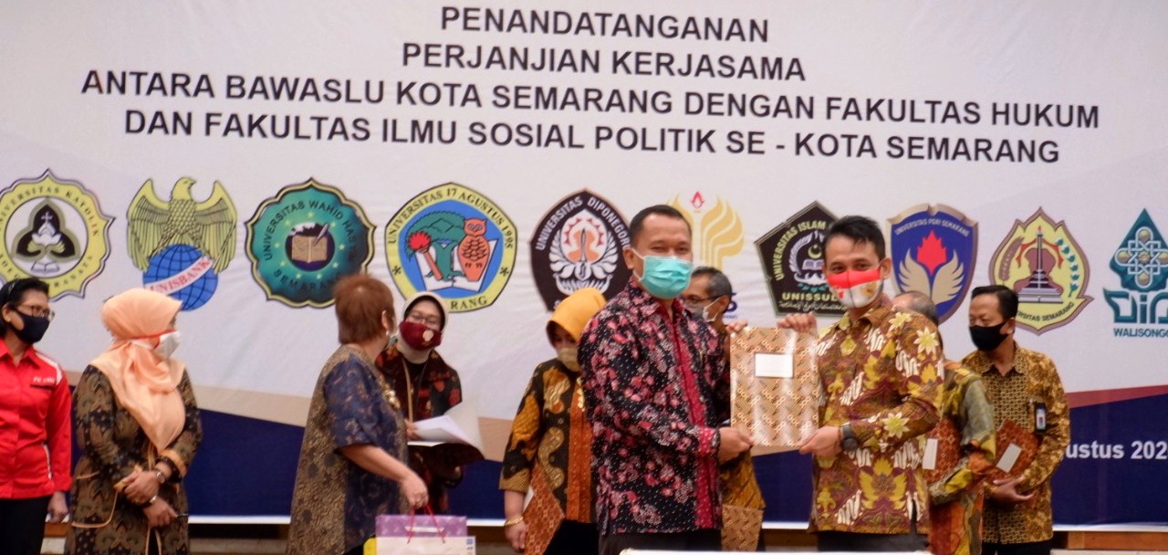 Fakultas Hukum Universitas Wahid Hasyim Semarang melakukan Perjanjian Kerjasama dengan Bawaslu Kota Semarang, Penandatangan Kerjasama antara Fakultas Hukum dilakaukan oleh Dekan Fak Hukum Universitas Wahid Hasyim Dr, Mastur, SH, MH ddengan ketua Bawaslu Kota Semarang Amin Purniawan, MAP, Muang Rama Shinta Hotel Patra Semarang pada hari Kamis, 27 Agustus 2020. Perjanjian Kerjasama ini merupakan kerjasmaa dalam bidang Tri Dharma Perguruan Tinggi. Kerjamsama ini juga diikuti oleh Fakultas Hukum yang ada di Kota Semarang. Perjanjian Kerjasama ini diharapkan bisa berjalan dan diimplematisakan dengan baik khususnya menjelang Pemilihan Kepala Daerah yaitu PILWAKOT Semarang yang akan diselenggarakan pada Bulan Desember 2020. Kerjasama ini khusnya dalam bidang Pengawasan Pilwakot kota Semarang yang akan melibatkan unsur Fakultas Hukum dan para mahasiswa dalam membantu dan mensukseskan pilwakot yang JURDIL dan LUBER.