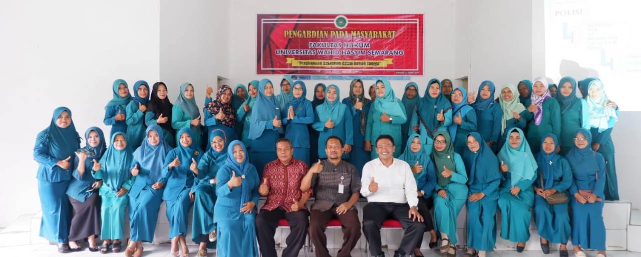 Fakultas Hukum Universitas Wahid Hasyim Semarang dalam rangka menjalankan tugas Tri Dharma Perguruan Tinggi yaitu Melaksanakan Pengabdian pada Masyarakat dalam bentuk kegiatan sosialisasi Penghapusan Kekerasan dalam Rumah Tangga pada Ibu-Ibu PKK se kelurahan Pakintelan Gunungpati,Semarang pada hari Jumat 24, Januari 2020 di Balai Kelurahan Pakintelan. Kegiatan pengabdian masyarkat tersebut menhadirkan Nara sumber dari Fakultas Hukum Dr, Mastur, SH, MH dan M arif Agung Nugroho, SH, MH dan diterima oleh Lurah Pakintelan Bapak Dody, SH dan diikuti oleh sekitar 75 Ibu-Ibu PKK sekelurahan Pakintelan. Menurut Dekan Fakultas Hukum yang sekaligus sebagai Narasumber kegiatan tersebut Pengabdian ini bertujuan untuk memberi pemahaman pada Ibu Ibu PKK tentang Kekerasan dalam Rumah Tangga baik yang dilakukan Bapak, Ibu dan anak sehingga harapannya setelah paham akan terhindar dari Kekerasan Dalam Rumah Tangga. Lurah Pakintelan Dody, SH dalam sambutannya menyatakan kegiatan pengabdian ini penting dan mengucapkan banyak terimakasih pada Tim Pengabdian Fak Hukum UNWAHAS agar masyarakat khususnya Ibu Ibu PKK sebagai bagian dalam Rumahtangga paham betul tentang bentuk bentuk KDRT dan proses pelaporan KDRT sehingga diharapakan di kelurahan Pakintelan tidak terjadi Kekerasan dalam Rumah Tangga.
