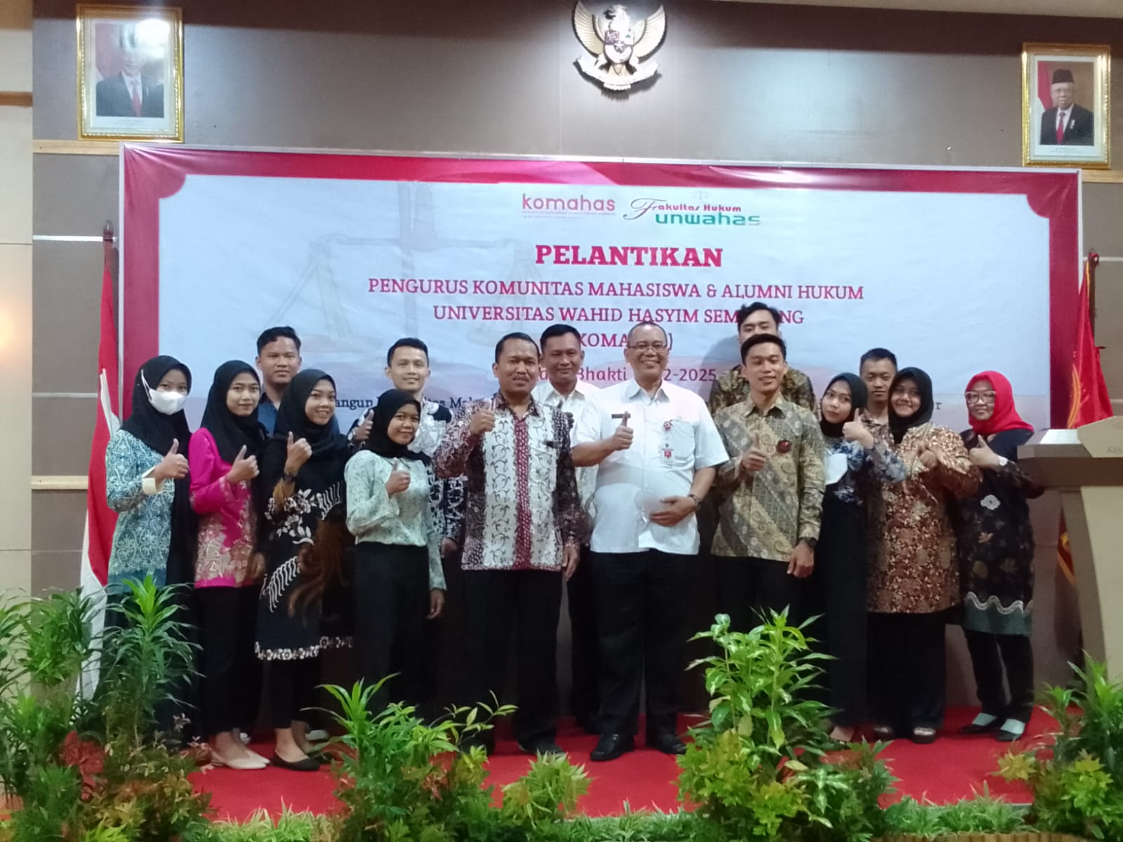 Rabu, 12 Oktober 2022 bertempat di Hotel Kesambi Hijau Dr Mastur, SH selaku Dekan Fakultas Hukum Universitas Wahid Hasyim Semarang melantik Pengurus KOMAHAS (Komunitas Mahasiswa dan Alumni Hukum UNWAHAS ) Periode 2022-2025 dengan ketua terpilih Nukriawan, SH. Pada pelantikan kali ini mengambilbtema Membangun Komunitas Mahasiswa dan Alumni Hukum yang Profesional, Berdaya Saing, dan Berkarakter Ahlusunnah wal Jamaah inin yang digelar di Ruang Seminar di Hotel Kesambi Hijau.bPelantikan ini dihadiri oleh Dekan , Dosen,Alumni, mahasiswa, dan tamu undangan lainnya. Hadir pula pada pelantikan KOMAHAS Kepala Badan Kesatuan Bangsa Politik(Kesbangpol) Kota semarang Dr Agus Sugiyarto, MSi yang mewakili Walikota ,Babinkamtibmas setempat dan tokoh masyarakat. Dekan menyambut baik reorganisasi pengurus KOMAHAS secara teratur sehingga kedepannya pengurus yang baru lebih baik dan maju dan bermanfaat bagi alumni dan mahasiswa sehingga saling bersinergi diantara alumni dan mahasiswa. Dalam sambutannya, Nukriawan selalu Ketua Umum menyampaikan bahwa Komahas lahir sebagai wadah bagi mahasiswa maupun alumni Fakultas Hukum Unwahas Semarang. Komunitas ini menjadi wadah silaturahmi dan sekaligus wadah untuk peningkatan kualitas diri dan problem solving, katanya. Dengan ini, ke depannya diharapkan dapat terjalin sinergitas antara mahasiswa maupun alumni Fakultas Hukum. Nukriawan juga meminta semua pihak bisa ikut andil membesarkan komunitas ini.Semoga kita mampu melaksanakan kepengurusan kita dan setiap pengurus dapat berdedikasi tinggi supaya dapat memberikan manfaat bagi masyarakat, lanjutnya.Lebih lanjut, ia juga mengatakan bahwa pemerintah, dalam hal ini dihadiri oleh Kesbangpol Jateng serta Aparat TNI yang diwakili Bhabinkamtibmas dapat menjadi mitra yang baik yang dapat bersinergi membangun Indonesia.Semoga dengan tanggung jawab yang kita laksanakan dengan menjalankan program kerja yang telah kita canangkan menjadi amal baik bagi kita dan bermanfaat untuk umat dan bangsa, pungkas Nukriawan.